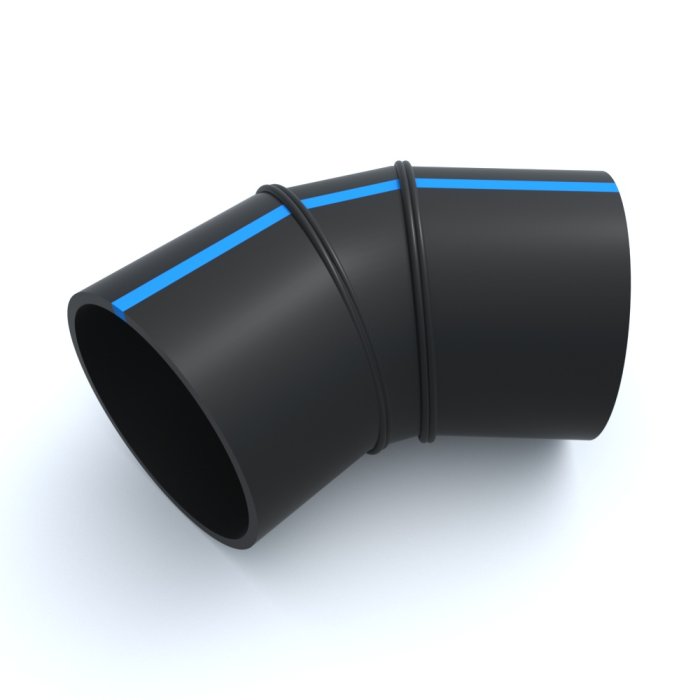 Отвод сварной ПНД 45º 500x330x479x280 мм SDR-13,6 упрощает работу прокладчикам трубопроводов применением различных готовых угловых соединений